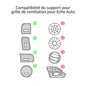 Ajoutez Alexa à votre voiture : Echo Auto se connecte à l’application Alexa sur votre téléphone et utilise les haut-parleurs de votre voiture via l’entrée AUX ou la connexion Bluetooth de votre smartphone. Support pour grille de ventilation inclus.