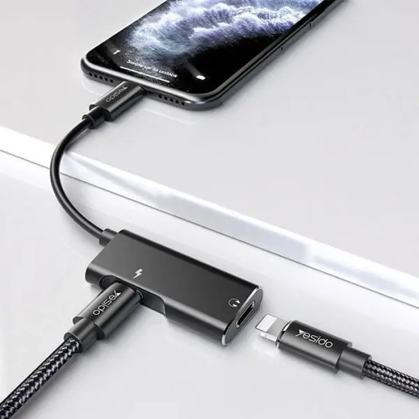 Adaptateur audio 2 en 1 YAU12 convertit l’adaptateur répartiteur de musique et de charge Lightning vers Lightning .