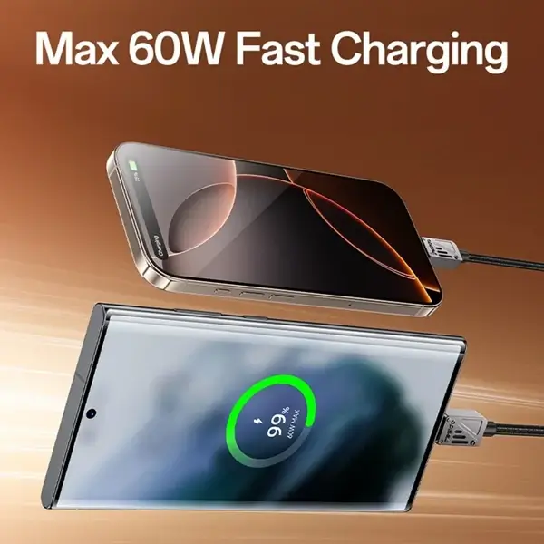Prise en charge de la charge rapide jusqu’à 60W / 3A et du transfert de données haute vitesse — idéal pour les ordinateurs portables, tablettes et smartphones gourmands en énergie.