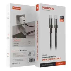 Résistant aux conditions difficiles et à l’usage quotidien, le câble Porodo USB-C vers USB-C avec coque transparente est une solution fiable et performante, parfaitement adaptée à votre mode de vie.