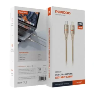 Le câble Porodo USB-C vers USB-C avec lumière LED est un compagnon fiable au quotidien, grâce à son transfert de données efficace et sa capacité de charge rapide. Avec une longueur de 1,2 mètre et un design tressé renforcé, il garantit une utilisation sans enchevêtrement et une excellente durabilité.