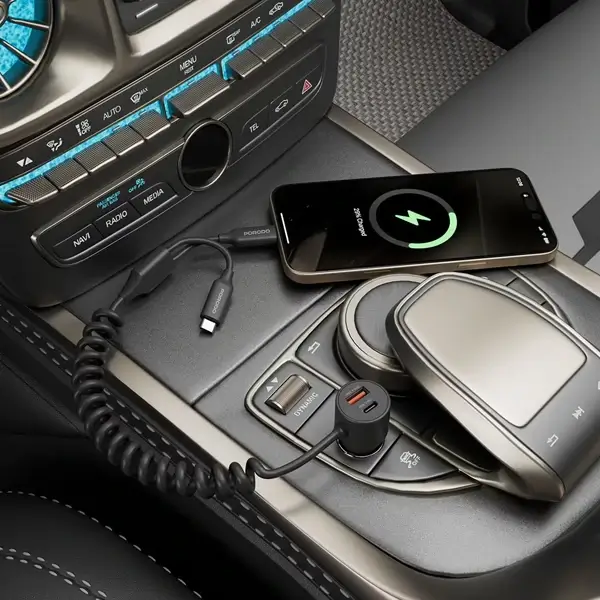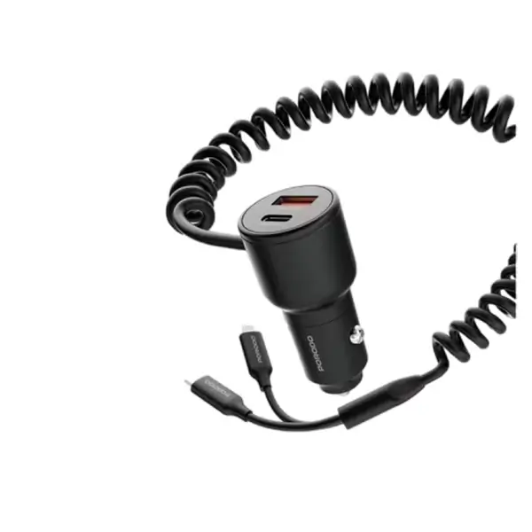 Le Chargeur de Voiture Double Port Porodo est une solution compacte mais puissante, idéale pour recharger vos appareils en déplacement. Doté de câbles intégrés Type-C et Lightning, il permet une recharge pratique sans avoir besoin de câbles supplémentaires.