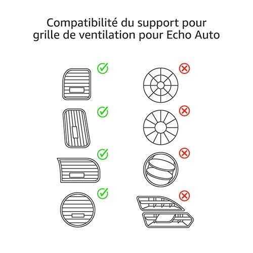 | Connectivité | Echo Auto se connecte à la plupart des voitures équipées d’une connexion Bluetooth ou d’une entrée AUX pour écouter de la musique. L’appareil est plus performant dans les voitures qui ne sont pas équipées d’Apple CarPlay ou Android Auto. Lors de l’utilisation du Bluetooth, certains appareils ne fonctionnent pas correctement avec Echo Auto. En savoir plus. Si vous ne parvenez pas à connecter des appareils à votre voiture pour écouter de la musique via Bluetooth ou en utilisant un câble AUX, essayez de connecter Echo Auto avec un accessoire supplémentaire, comme un transmetteur FM ou un adaptateur cassette. |