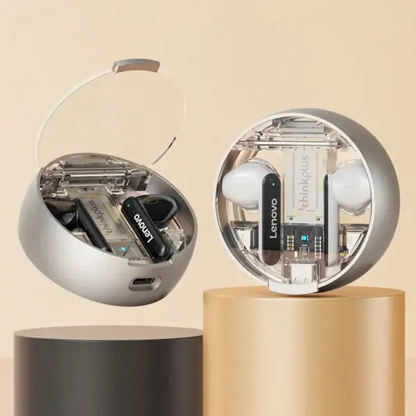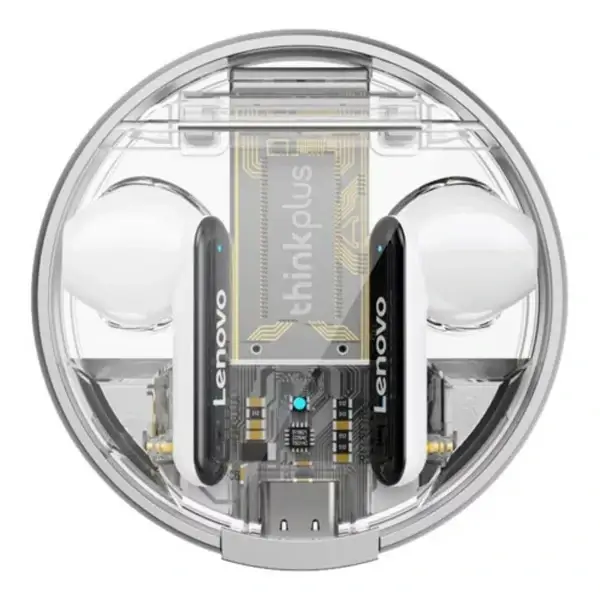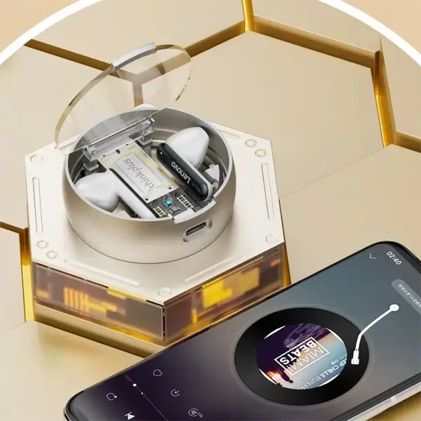 1. Les derniers écouteurs design de Lenovo en 2022. Le compartiment de charge est composé d’un anneau extérieur en alliage d’aluminium et d’un couvercle en PC transparent pour une texture plus visuelle.