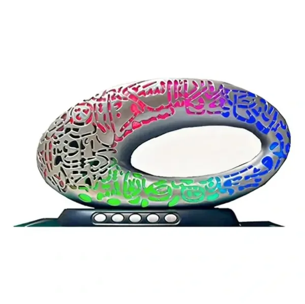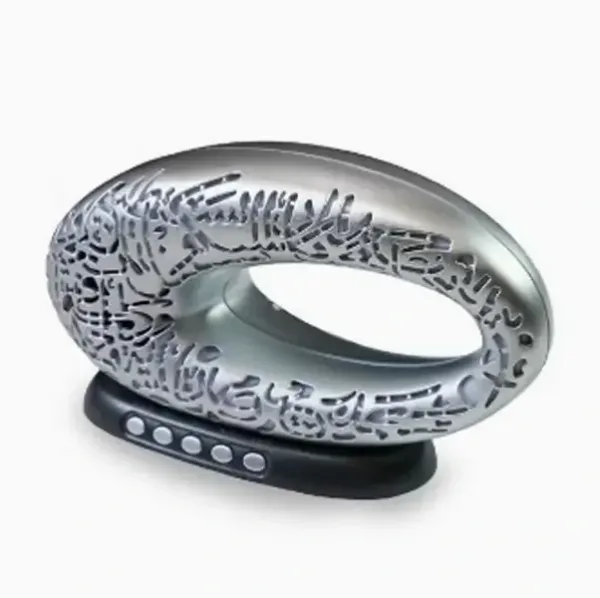 Le haut-parleur Quran avec lumière colorée Azan de la forme du musée du futur de Dubaï est un produit unique et polyvalent qui allie la technologie moderne à la culture islamique traditionnelle. Avec sa récitation de haute qualité du Coran, sa fonction Azan et sa lumière LED colorée, ce haut-parleur est l’accessoire parfait pour ceux qui veulent écouter le Coran ou leur musique préférée avec style.