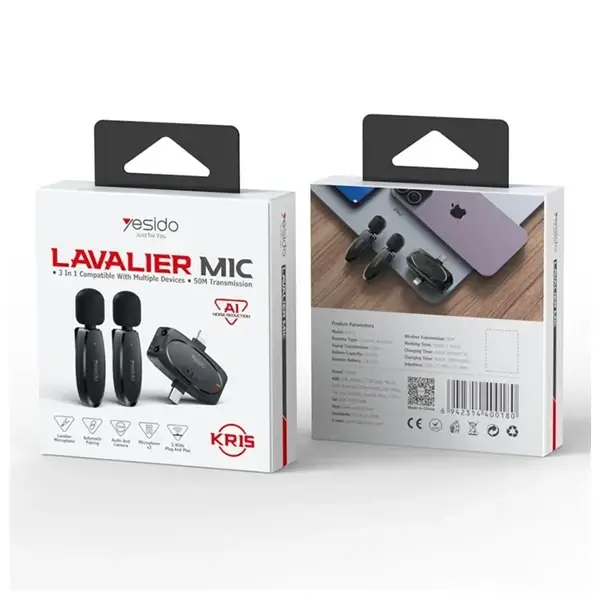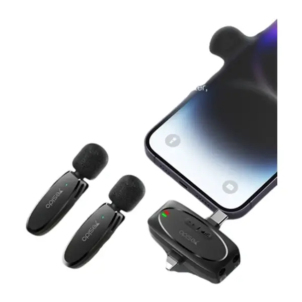 YESIDO KR15 Microphone Lavalier sans fil à faible latence IP / Type-C / Récepteur 3,5 mm + Ensemble de 2 microphones émetteurs