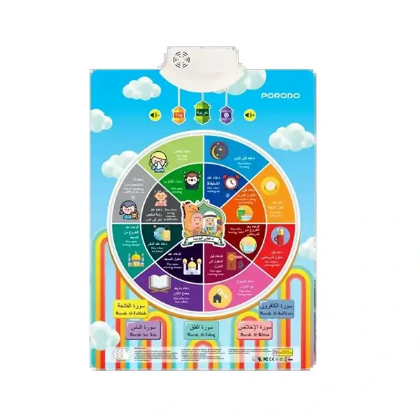 Le Tableau mural interactif éducatif des Duas Porodo Kids est un outil d’apprentissage interactif et engageant conçu pour aider les enfants à pratiquer et mémoriser les duas et sourates islamiques essentielles. Ce poster vibrant et adapté aux enfants dispose d’un guidage vocal pour rendre l’apprentissage à la fois agréable et efficace. Il propose du contenu en anglais et en arabe, soutenant ainsi divers apprenants et favorisant un apprentissage autonome et interactif. L’appareil comprend 16 duas quotidiennes et 5 sourates, offrant une base complète aux jeunes apprenants. Cet outil léger et portable fonctionne avec trois piles AA (non incluses). Il peut être utilisé n’importe où, ce qui en fait un excellent choix pour les familles en déplacement. Son design et ses fonctionnalités encouragent les enfants à explorer et apprendre à leur propre rythme, renforçant ainsi leur confiance dans leurs compétences en récitation. Le Porodo Kids Daily Dua & Surah est parfait à la maison ou lors de moments de calme. C’est un excellent compagnon pour les enfants qui commencent leur voyage spirituel.