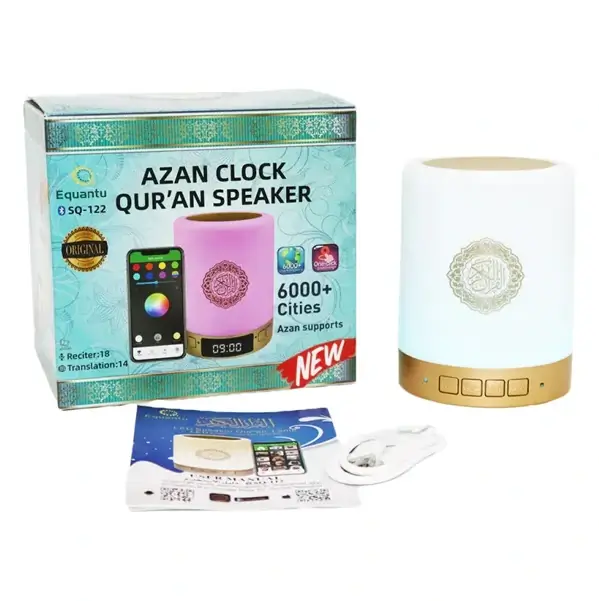 La Veilleuse Coranique Equantu SQ-112 possède pas mal d’atouts. C’est un condensé technologique dans un boitier compact (ce qui la rend facilement transportable). En effet son contenu par de lui même puisqu’il contient 17 récitateurs différents parmi les plus célèbres (Abdulah Matroud, AbdulBasit, Abdullah Basfer, Abu Baker Ash-Shatery, Al-Ajmi, Al-Afasy, Al-Hudaifi, Al-Husari, Al-Minshawi, Al-Sudais, …), 15 traductions du Coran (Qur’an) dont le français, et des ouvrages tels que Sahîh Boukhârî, Sahîh Mouslim, de la Ruqyah, Hisn Al-Mouslim, Al-Qâ’ida An-Nouraniyya, l’apprentissage de la Salât. De même que les 40 Hadîths d’An-Nawâwî et le Tafsîr du Coran en Arabe et Anglais.