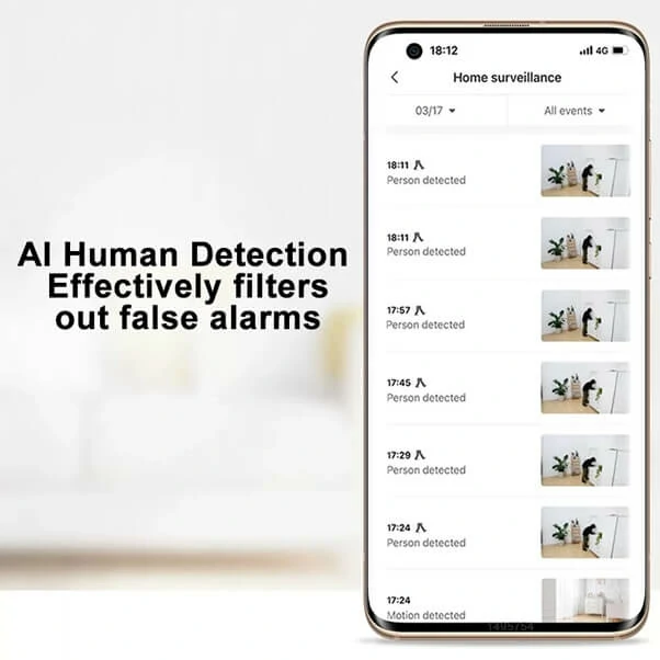 【Alerte de détection de mouvement AI】 Grâce à l’intégration de la technologie d’apprentissage en profondeur et à l’optimisation ciblée des algorithmes et du logiciel réseau, la caméra est capable de déterminer avec précision quand vous alerter et vous avertir sur votre téléphone.